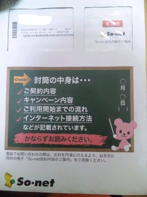 そして、予定が合えば2回目の工事の予約が取れたのですが、あいにく予定が合わずに自分でSo-netへ連絡することに。