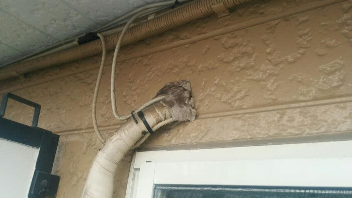 エアコンがついているなら穴もあるはずなのに。工事の人がエアコンのカバーを外すとエアコンの背後に穴が隠れていることが発覚。