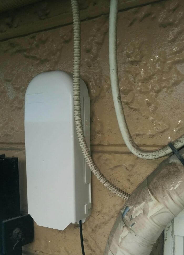 その後も黙々と工事を進めていただき、外壁にNTTの光ケーブルを接続するためのキャビネットを取り付けていただきました。
