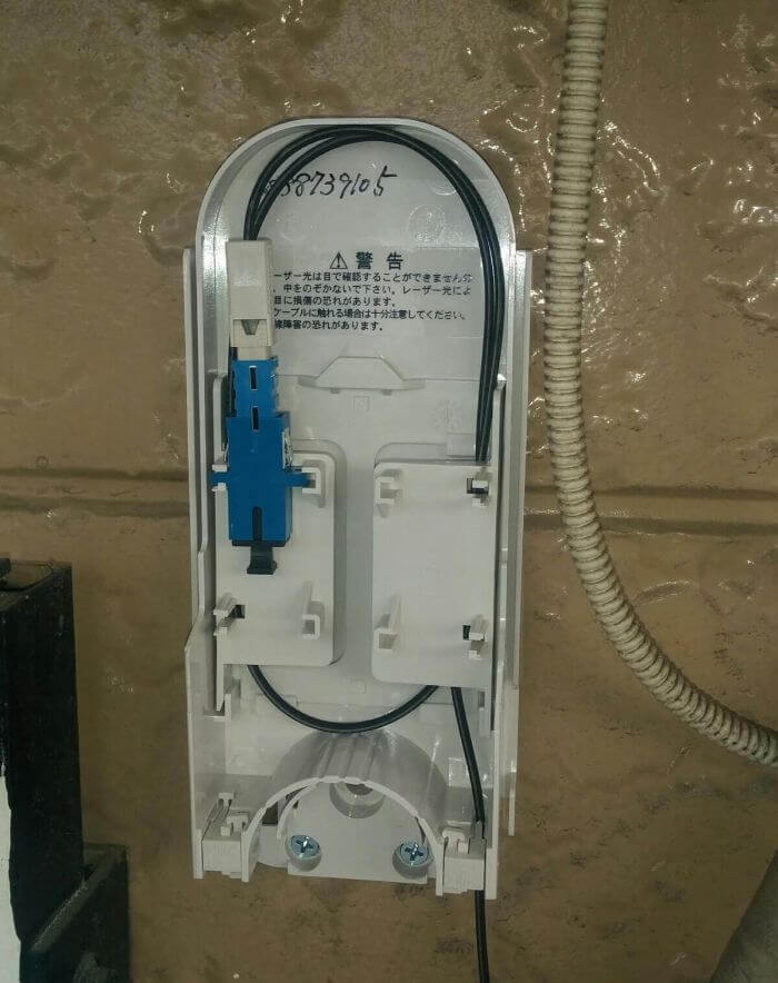 そして、宅内工事で設置したキャビネットに接続してもらって工事完了です。