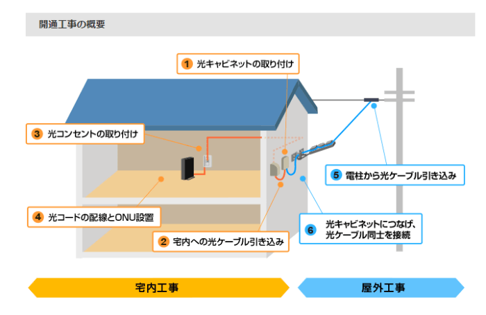 前述しましたが、NURO光の工事には「宅内工事」と「屋外工事」の二種類があります。