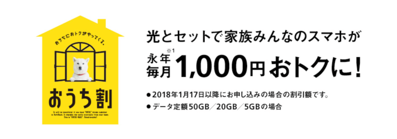 - ソフトバンクの携帯料金が毎月最大1,000円安くなる「おうち割 光セット」