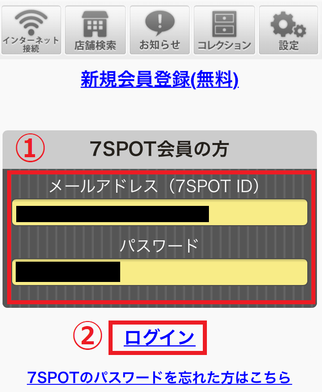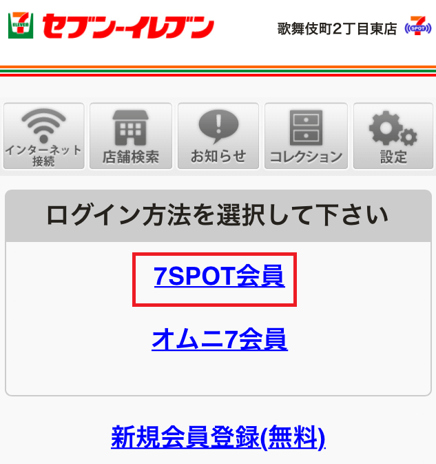 【2回目以降】セブンスポットのログイン画面と設定手順