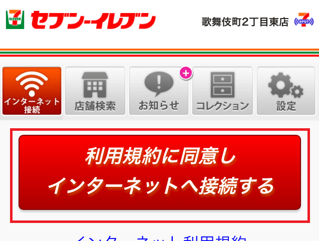 「7SPOTへのネットワーク接続」と「会員登録」だけではセブンスポットは利用できません。セブンスポットを利用するには、会員登録後、ブラウザを開いて「利用規約に同意」後、[利用規約に同意しインターネットを開始する]をタップする必要があります。接続手順の詳細は、記事の前半を参考にして下さい。