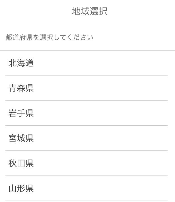 (3)「地域選択」画面が表示されるので、住んでいる地域をタップします。▼