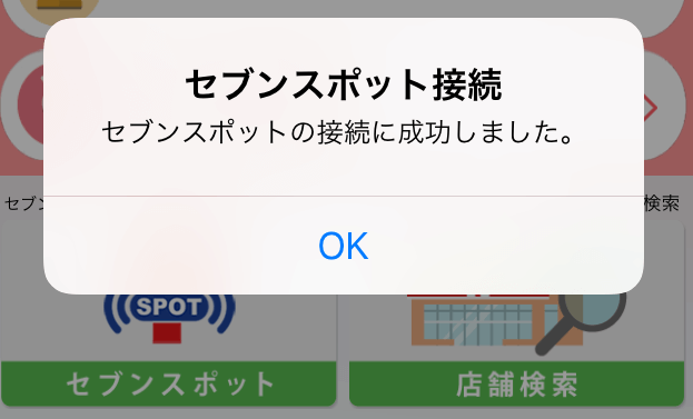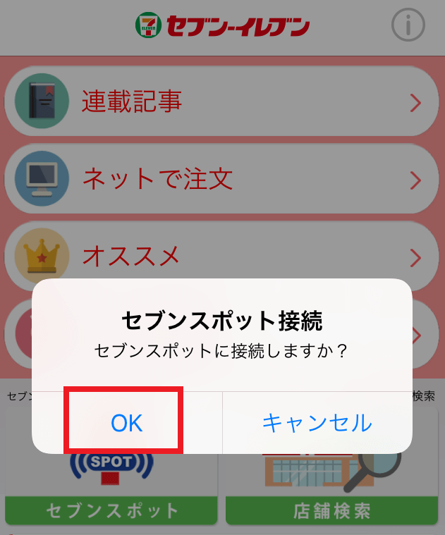 (8)「セブンスポット接続」が表示されます。[OK]をタップ▼