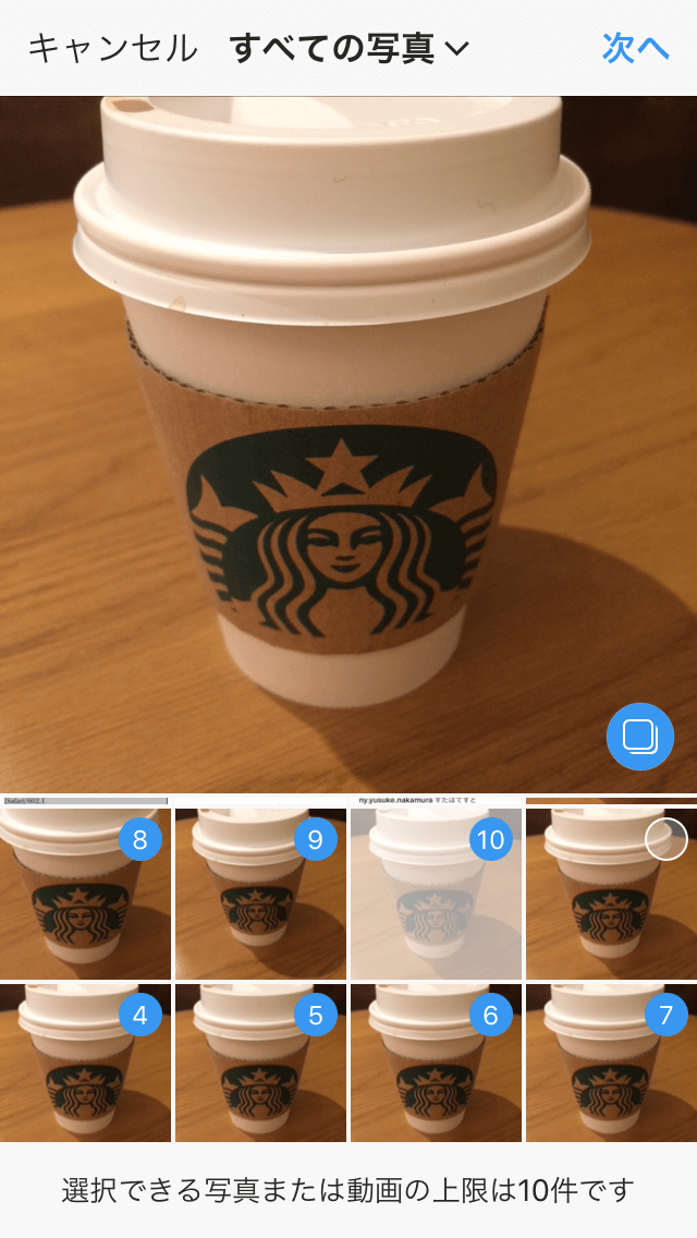 インスタグラムで、スマホで撮った写真10枚を同時に投稿したところ、15秒程度でアップロードが完了しました。