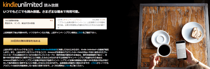 ちなみに、Amazonにはこれまた上位版の電子書籍読み放題サービスがあります。洋書も含めると200万冊以上のkindle本が読み放題の「Amazon Kindle Unlimited(アマゾン・キンドル・アンリミテッド)」という数の暴力のようなサービスです。