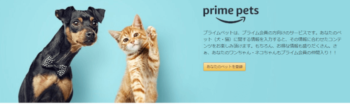 プライムペットは、自分のペット情報を登録することで、ペットに合わせた商品を割引で購入できたり、オススメ商品の情報を受け取れます。
