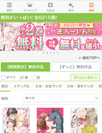 無料で読めるコミックは5,000冊以上。大人気作品の1巻目や「ずっと無料」の作品など、正直に言うと無料作品だけでも相当楽しめてしまいます。
