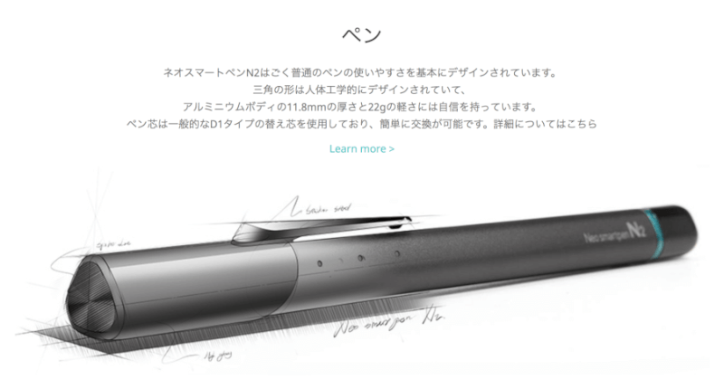 韓国と日本に拠点を置くNeoLABが提供する「Neo smartpen(ネオスマートペン) N2」はペン本体にセンサーが内蔵されているので、書いたものを即座にデジタル化してくれます。文字だけでなく、図やイラストもデジタル化できる優れものです。デジタル化したデータはEvernoteやGoogleドライブに共有できます。