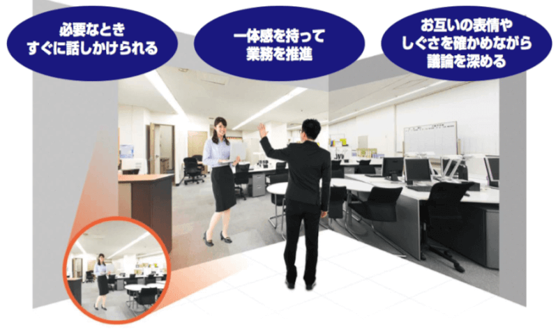 キャッチコピーは「空間と空間をつなぐ」です。臨場感があるので、業務の効率が上がりそうですね。