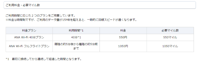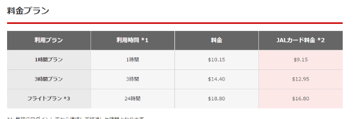 ANAでWi-Fiを利用するには、事前申し込みはいらず、シート前ポケットにあるパンフレットで申し込みます。料金は次の通りです。