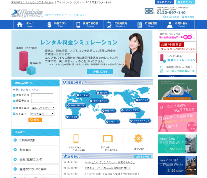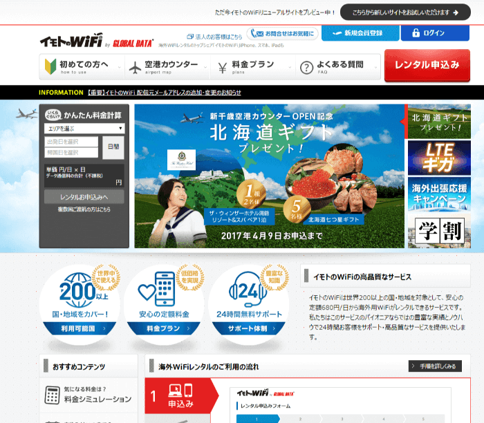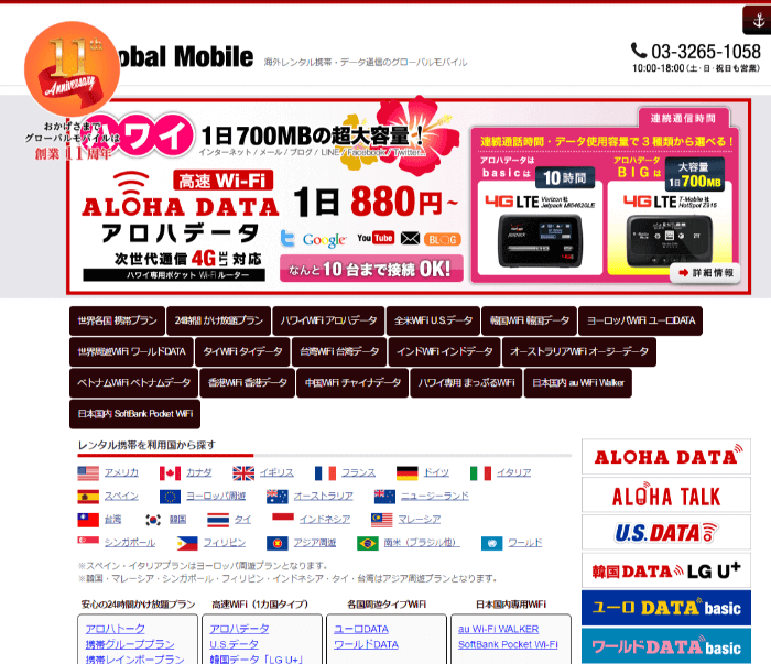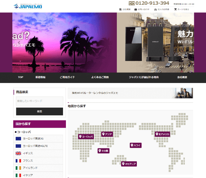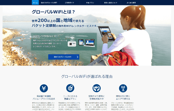 ソフトバンクのWi-Fiルーターをレンタルできる会社です。1日プランの他に、1カ月のプランがあり、長期になるほと割安になるため、長期で海外に滞在したいという人にはオススメです。