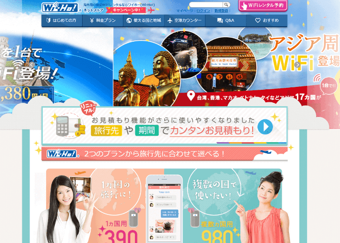 Wi-HO!(ワイホー)は約150の国と地域で使えるWi-Fiルーターです。一部の国限定ですが、1日312円のコースもあります。