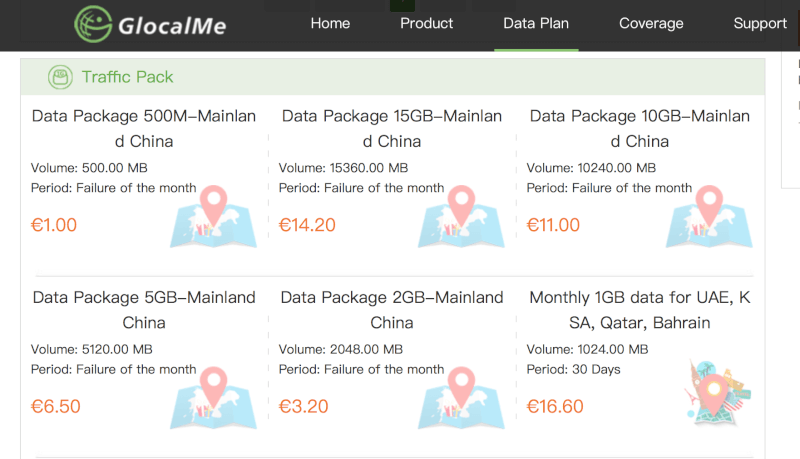 GlocalMe(グローカルミー)は購入型のモバイルWi-Fiルーターの代表的なブランドです。ただし、サービスを提供しているのが中国のuCloudlinkという企業なので、自分で端末を購入した場合、データ量のチャージは、公式サイトから中国語か英語で行う必要があります▼