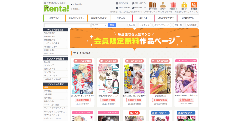 無料の会員登録が必要で、チケット(1枚100円)を利用して漫画をレンタルできます。レンタルに必要なチケットの数は漫画によって異なります。