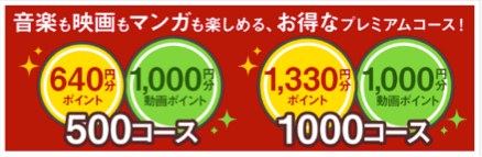 どのコースも、お好きな映画作品が楽しめる動画ポイントが、毎月1000ポイントもらえます。