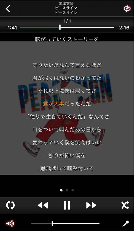 楽曲の再生時の機能も、とてもいいです。再生位置に合わせて、スクロールする歌詞表示▼