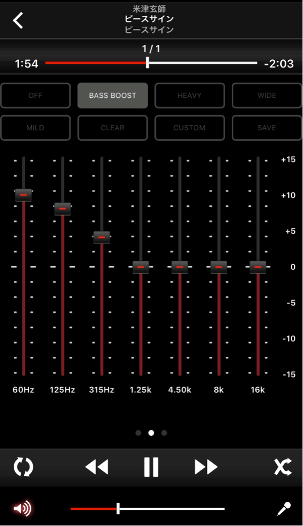プリセットがあり、誰でも簡単に音域を調整できるエコライザー▼