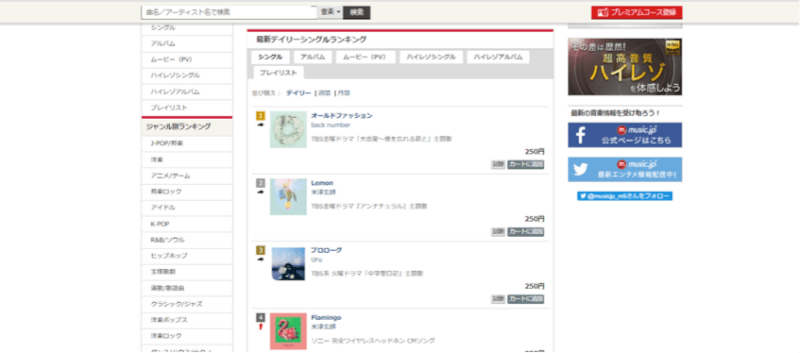 しかし、music.jpのランキング機能で、簡単に音楽のトレンドを掴めるようになりました。この機能では、最近の人気曲が、ジャンル別でタイアップのコンテンツ情報と一緒にランキング化されています。しかも日ごとに更新▼