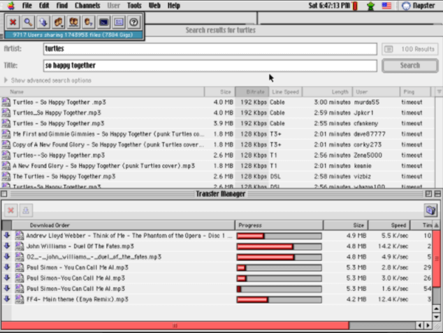 一時はレーベルに対し楽曲使用料の支払いを条件とする契約まであと一歩のところまで行きました。しかし、レコード業界はお互いの抜け駆けを牽制しあうばかりで合意に至らず、最終的にNapsterを違法認定し、サービスを終了させる道を選んだのです。
