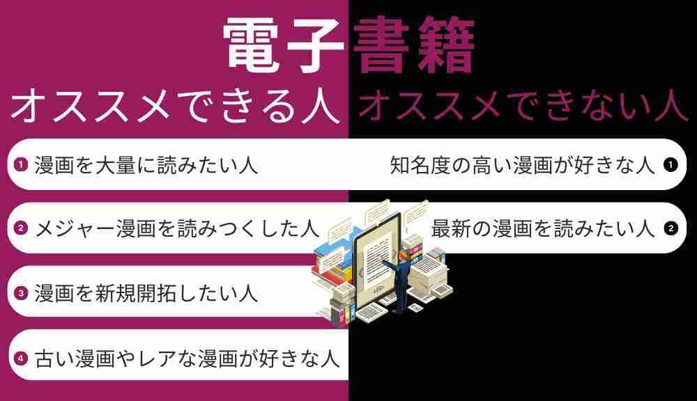読み放題サービスがオススメできる人、できない人は以下の通りです。