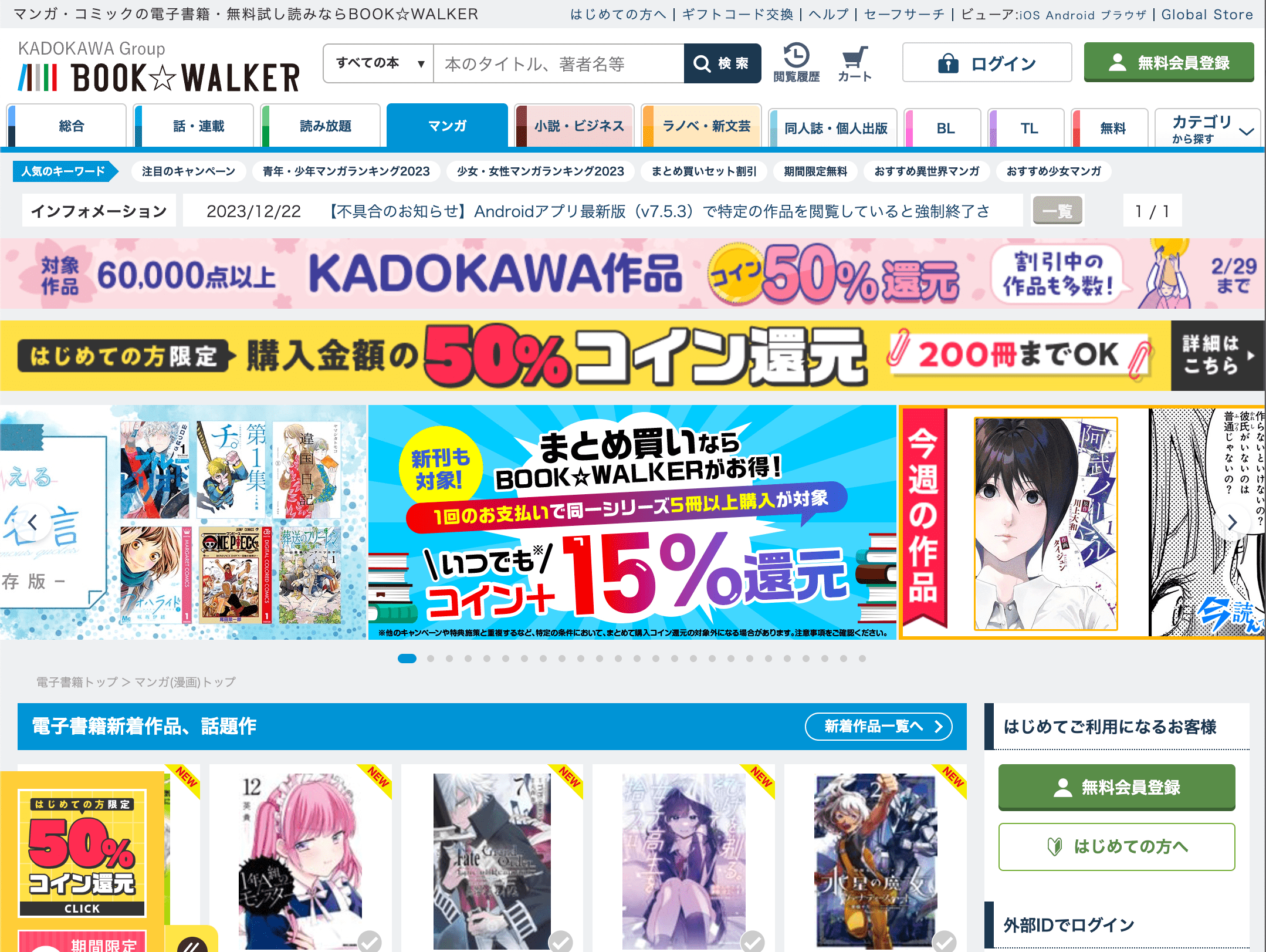 ニコニコアカウントでログインできる「BOOK WALKER」