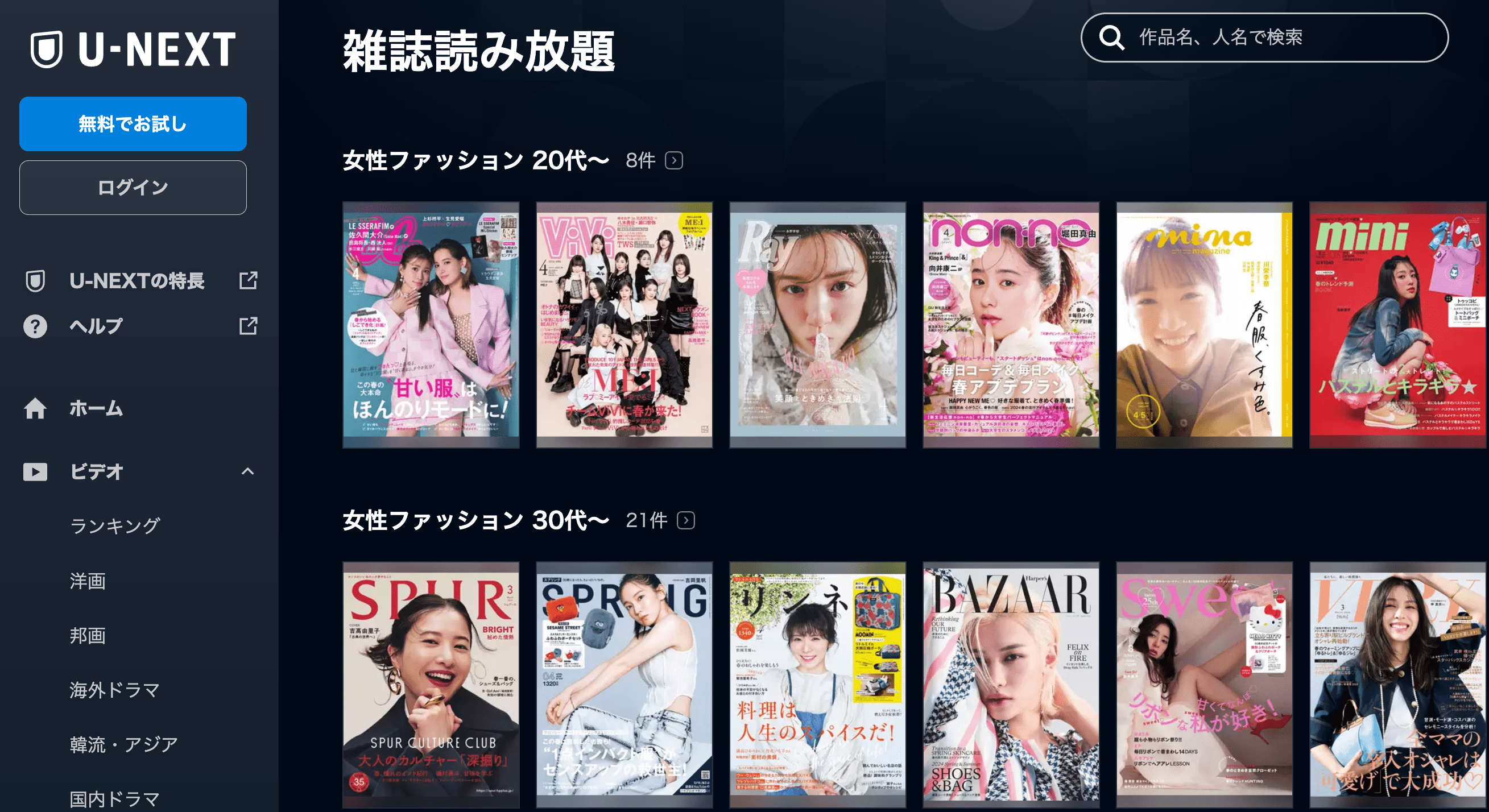 さらに、『週刊女性』『日経トレンディ』などの70種類以上の雑誌も読み放題。動画も14万本以上が見放題という凄まじいサービスです。