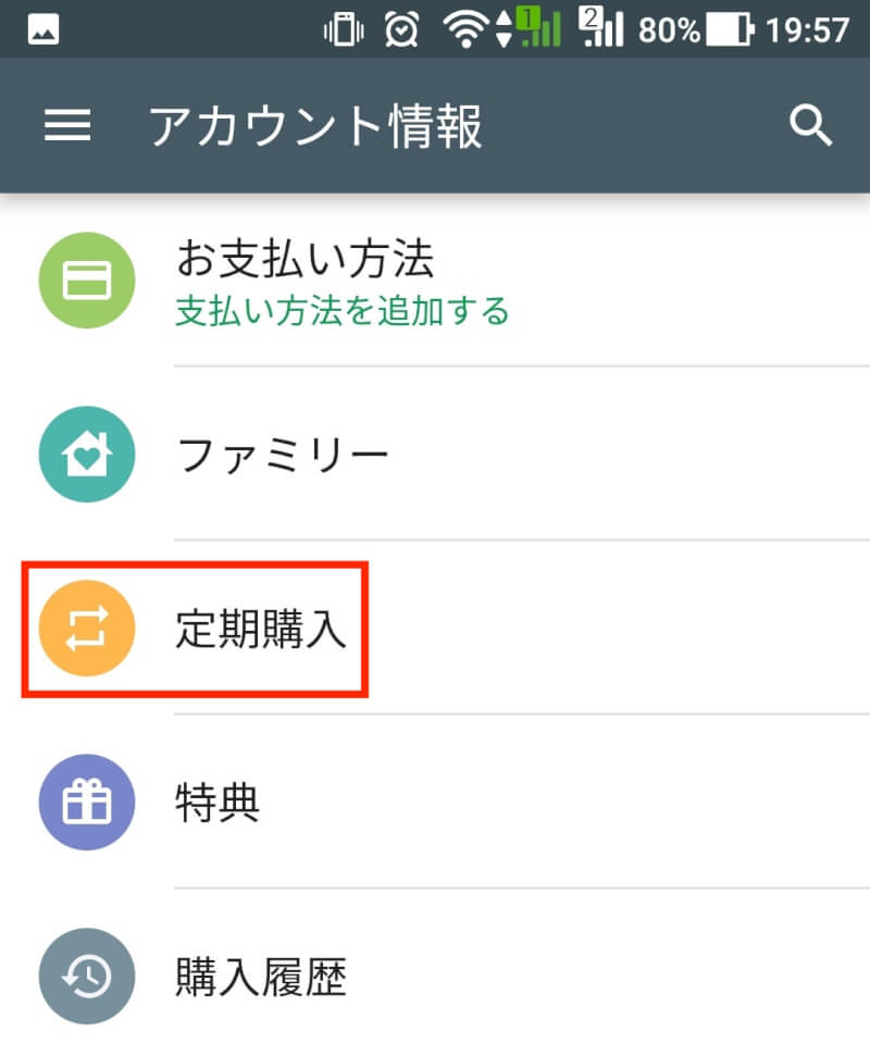 ⑤Androidスマホ本体の設定に飛ばされます。「定期購読」を選択▼
