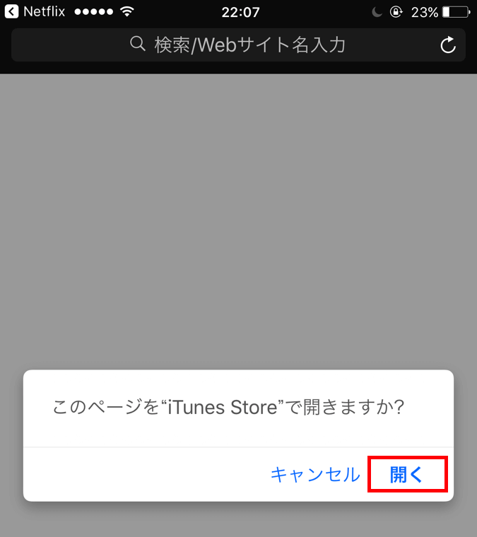 ⑤「このページを”iTunes Store”で開きますか?」と聞かれるので「開く」をクリック▼