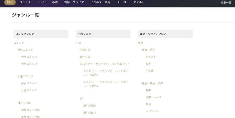 作家やジャンルごとに特集も組まれているので、好みのジャンルの新規開拓もスムーズです。