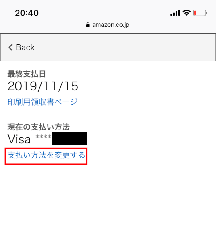 「支払方法を変更する」をタップ▼