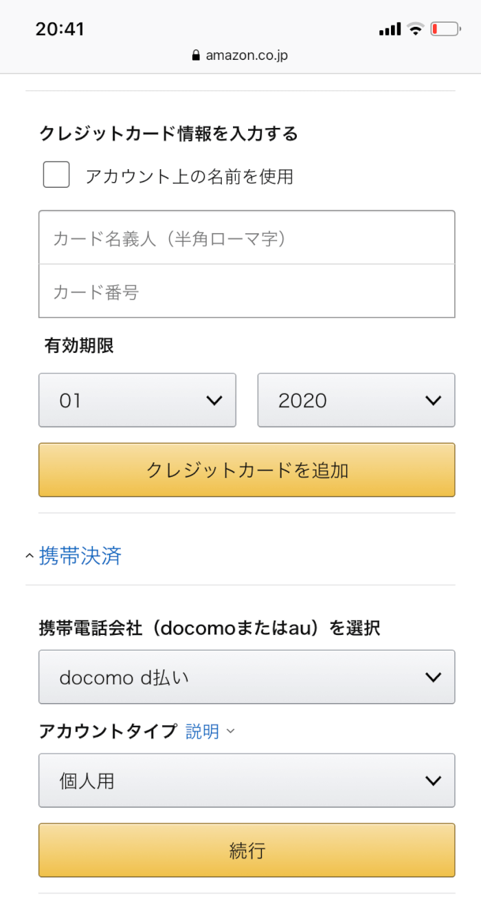 ②携帯決済(ドコモとauのみ)