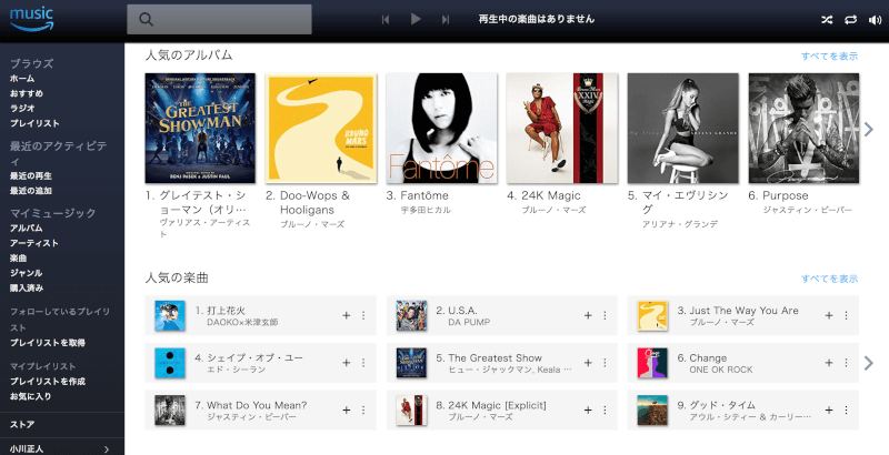 Music Unlimitedでも同じように、自分が聴いた曲に応じてAmazonがおすすめの曲を提案してくれます。この精度がとても高いです。