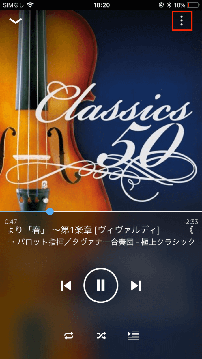 ①保存したい楽曲の再生画面で右上の[⋮]を押します▼