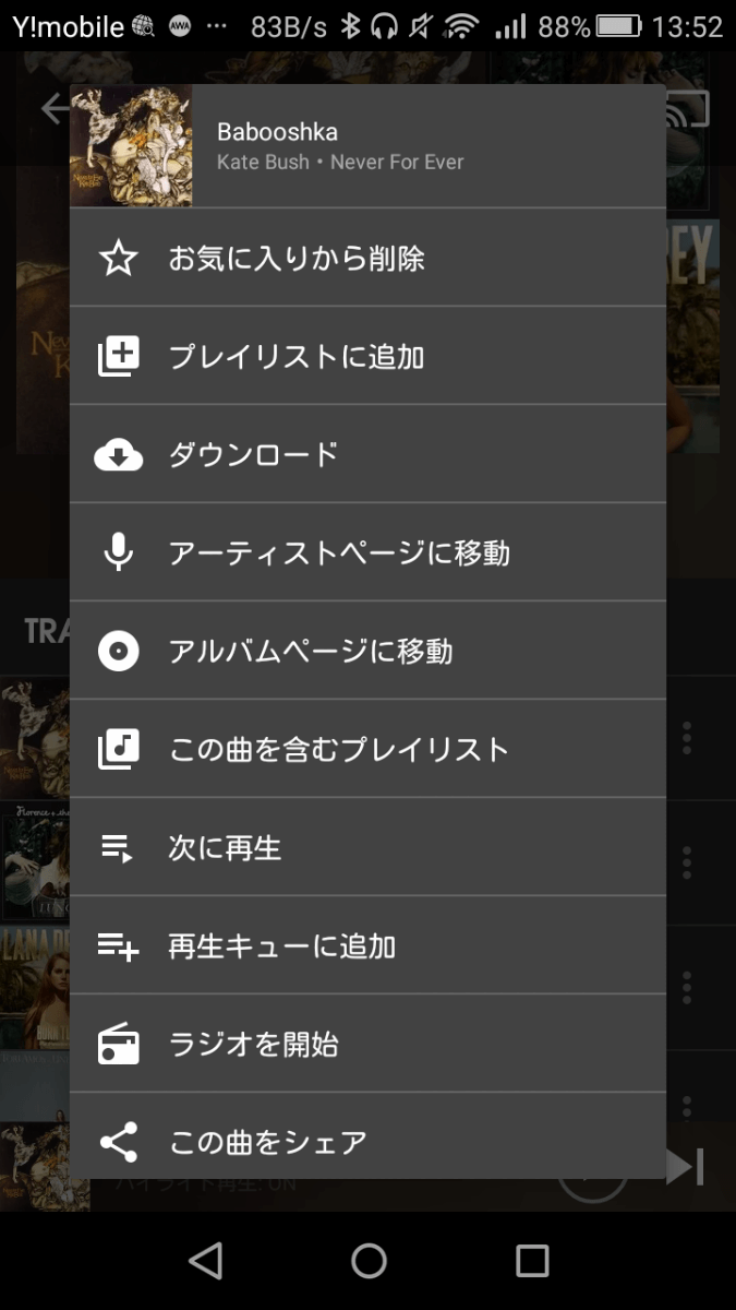 どの定額制音楽ストリーミングサービスでもほぼついている機能で、サービスによっては曲数制限がありますが、AWAの場合は、無制限です。ただし、本体の容量が必要なので、無制限といっても本体の保存容量分までしか曲はキャッシュできません。