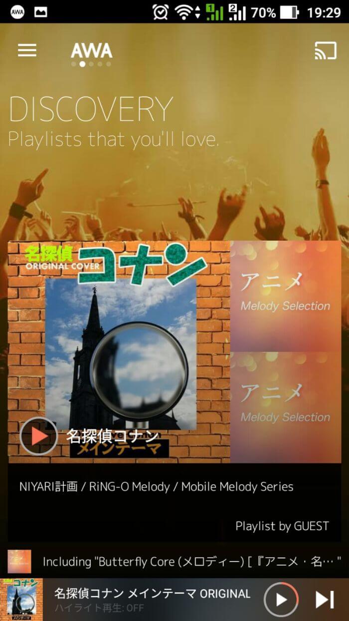 他の利用者が作ったプレイリストは他社サービスにもありますが、再生中の曲から「この曲を含むプレイリスト」といった風に、曲単位で探せる使いやすさはAWAがダントツに優れています。