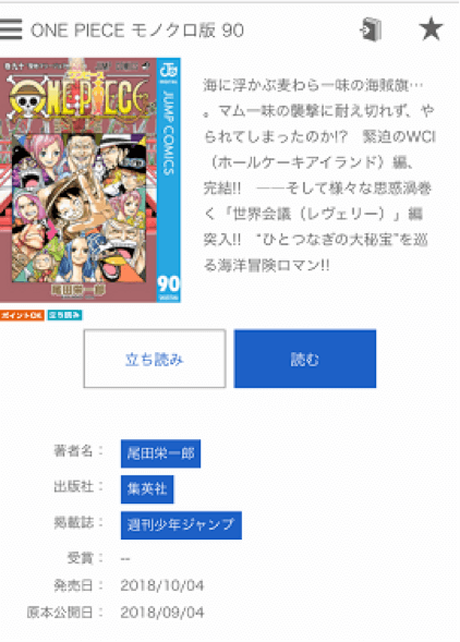 購入したい本を見つけたら、表紙の画像をタップし、「読む」をタップ▼