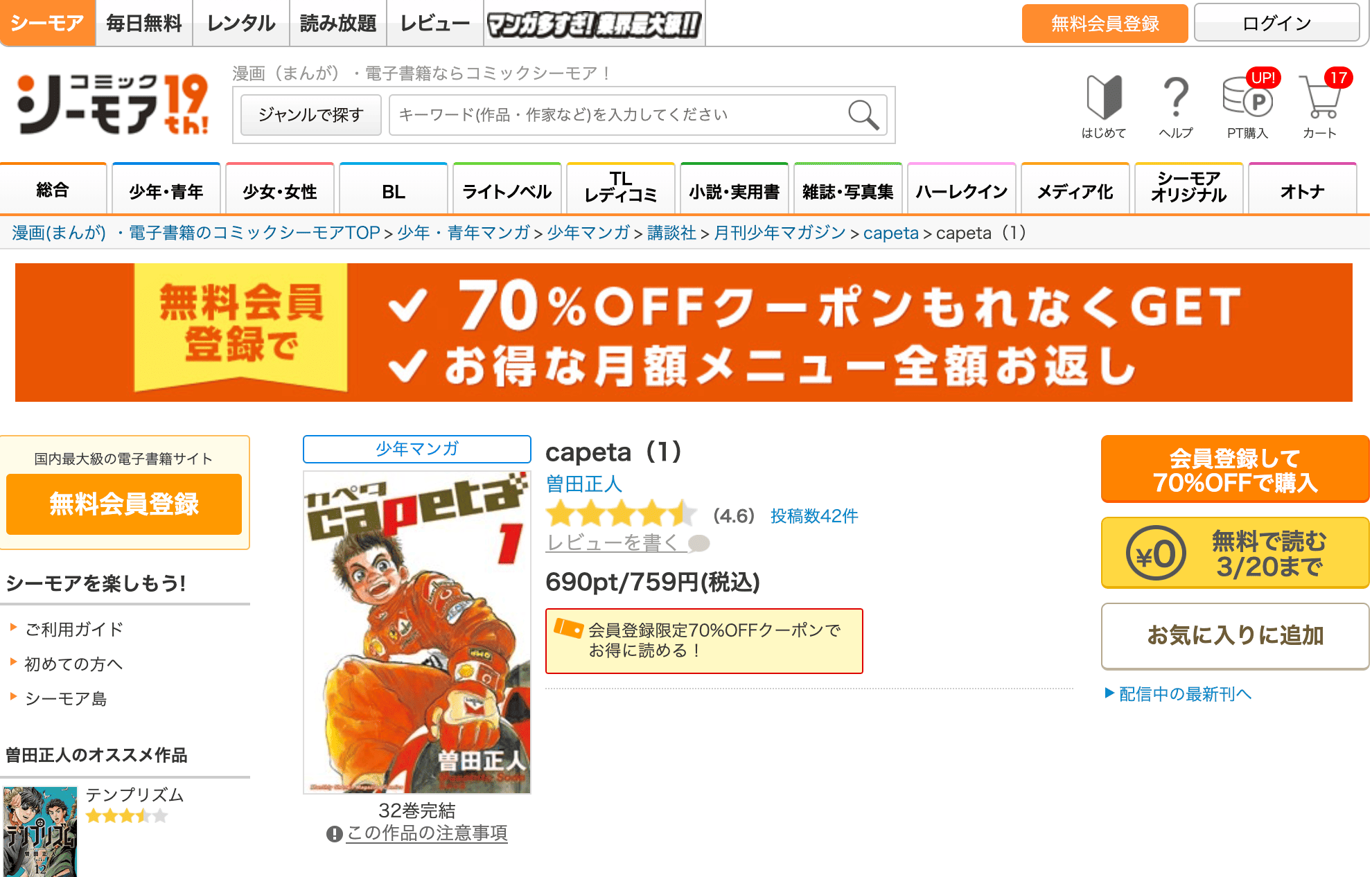 コミックシーモアでカペタ全巻を買う