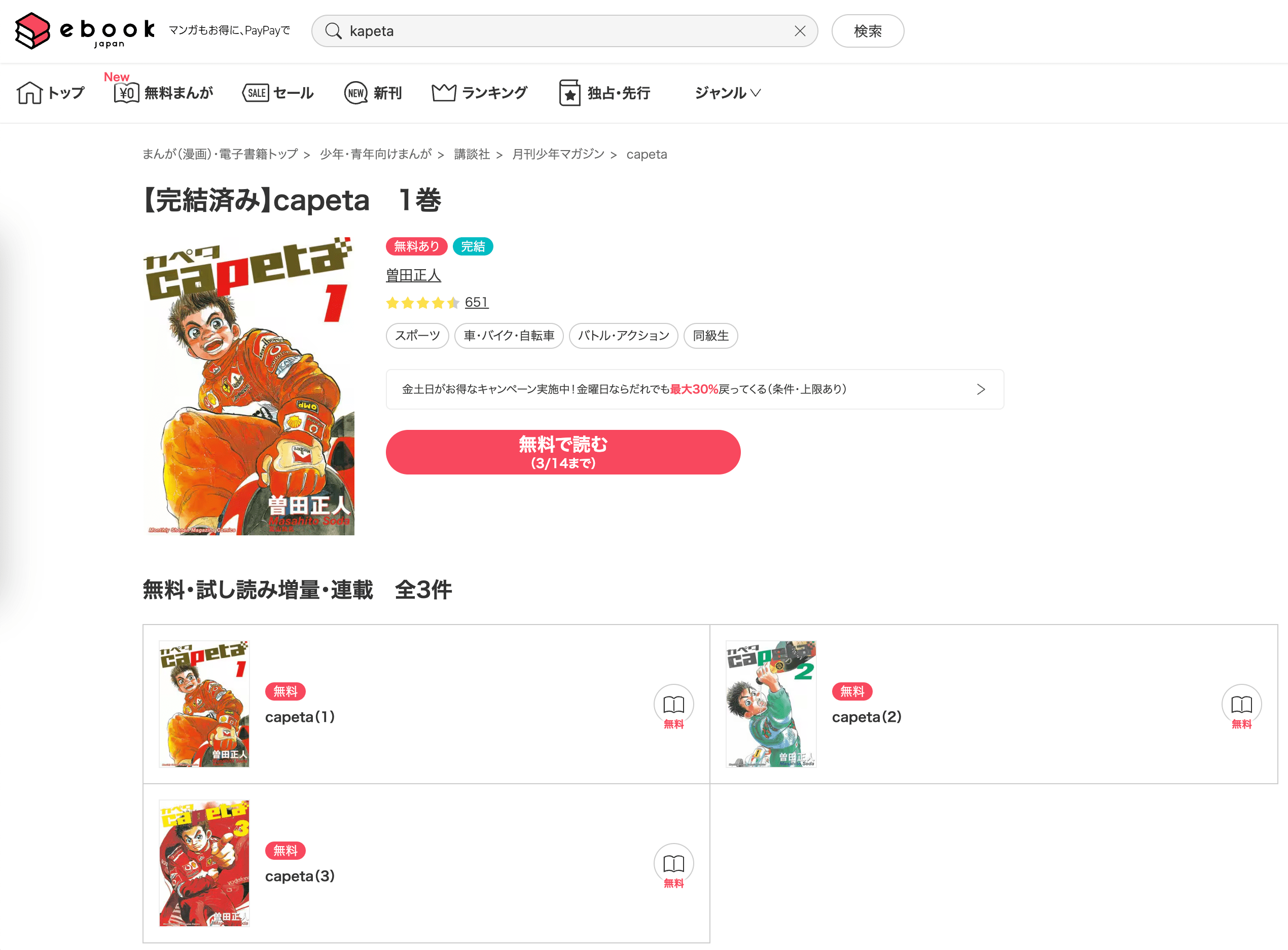 \カペタ全巻が電子コミックで最安/ebook japan