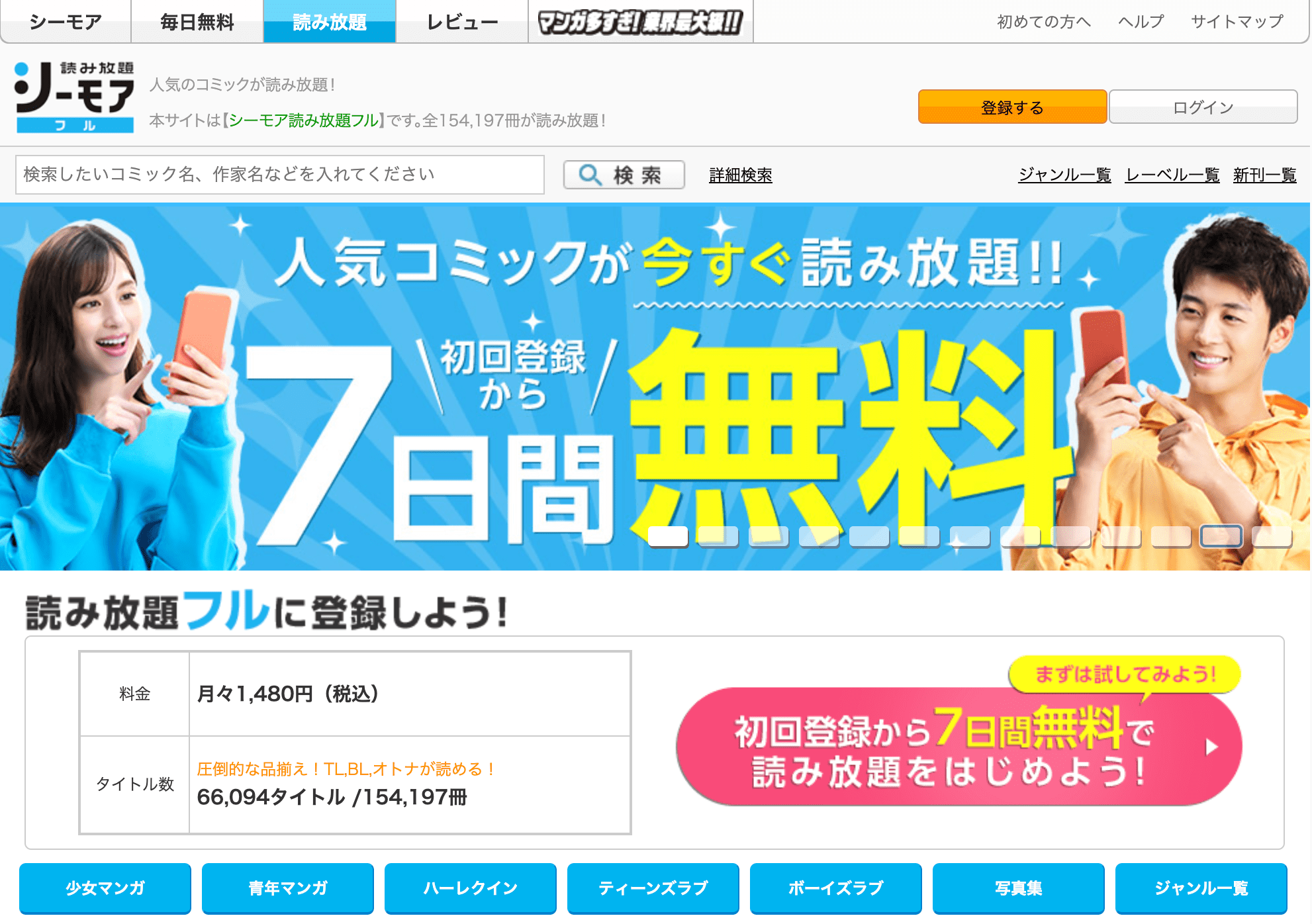 コミックシーモアの読み放題に登録すると、いまなら読み放題ライト、読み放題フルのどちらのコースも初回のみ7日間無料です。