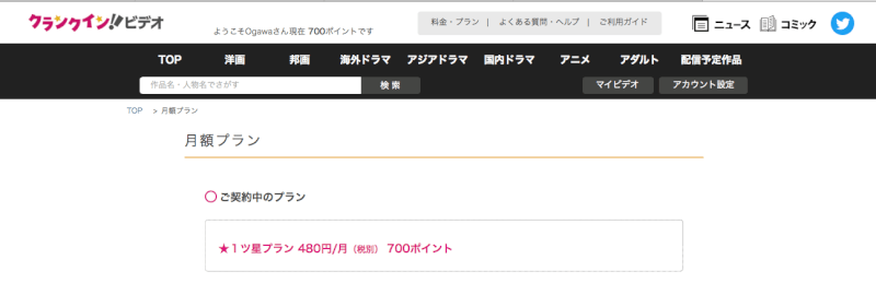 | 料金プラン | 0円:0ポイント 480円:700ポイント 900円:2,000ポイント 1,500円:3,000ポイント |