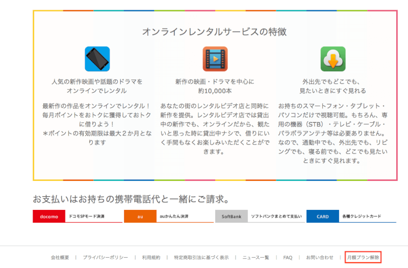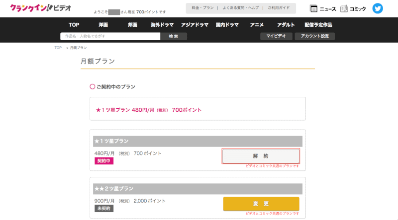 [月額プラン解除]が分かりにくいですが、こちらもシンプルですね。