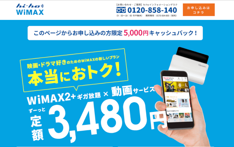 しかし、mieru-TVはネットを無制限で使えるモバイルWi-Fiルーター「hi-ho WiMAX」とのセットプランが用意されています。