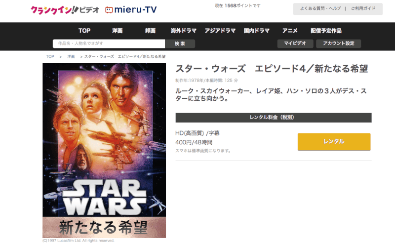 例えば、公開から40年以上が経っている『スター・ウォーズ エポソード4/新たなる希望』でも400円と新作と変わらない値段設定です▼