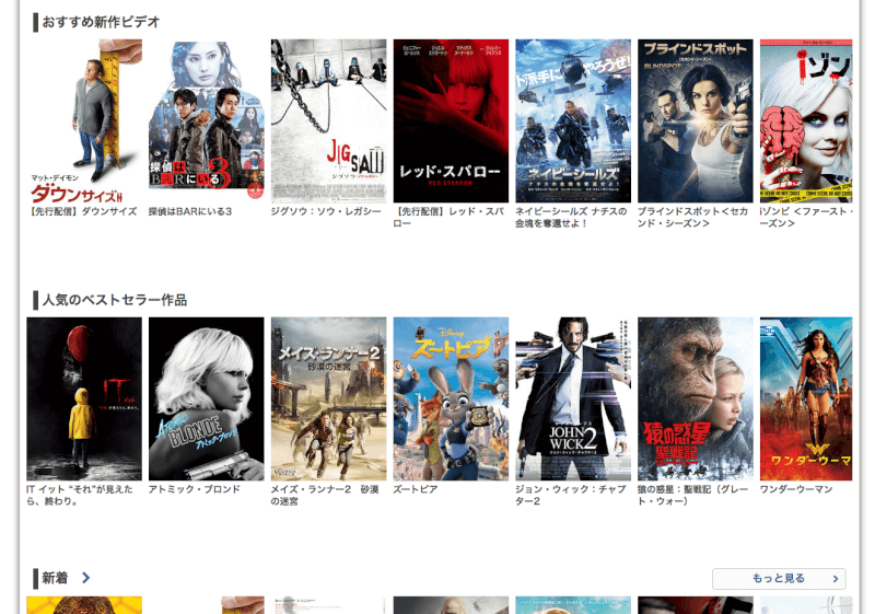 まるで、レンタルDVDショップの新作コーナーが丸ごと動画サービスになった感じです。他社の動画サービスを使っている方なら「新鮮な作品が並んでいる」と感じると思います。
