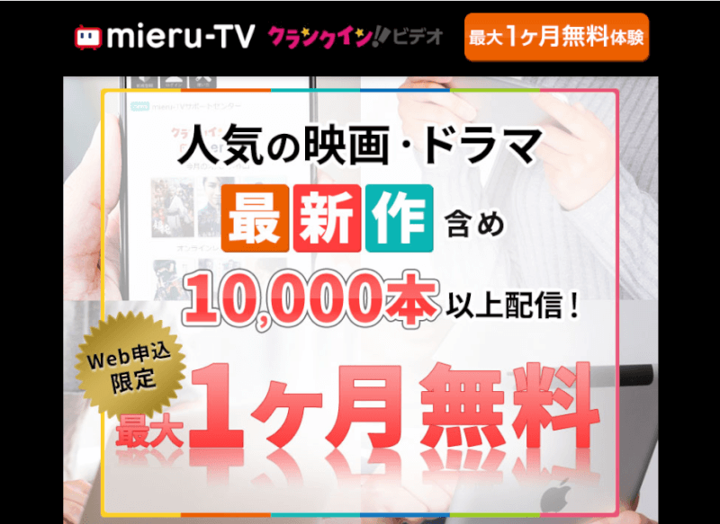 私は検証のために、クランクイン!ビデオとmieru-TVを両方契約しましたが、どちらでも観られる作品は同じなので、どちらか片方だけ契約すれば良いです。