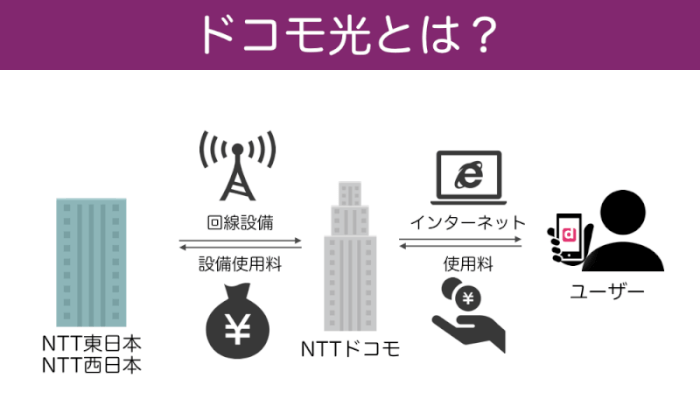 ドコモ光とは、NTT東日本やNTT西日本が持っている光回線をNTTドコモが借りて提供している光回線サービスです。