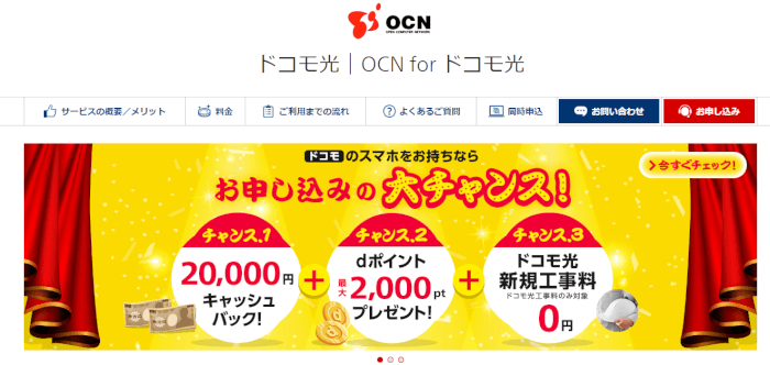 現在フレッツ光×プロバイダ「OCN」を利用している方は、そのまま「OCN」で契約しましょう。「OCN」は「@nifty」や「GMO」より月額料金が200円高い「タイプB」のプロバイダですが、プロバイダの解約違約金がかかる心配がありません。高速通信にも対応しており、キャッシュバックも20,000円受け取れます。